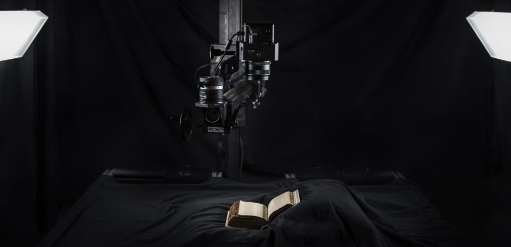 Bespoke camera setup with Phase One for capturing a fragile item that couldn’t be opened flat.