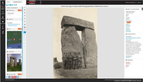 My geotagging addiction started while working on the National Army Museum’s brand new Recollect site. In the process of adding generalised location information, it became clear that some of the landmarks featured in the photographs could still be standing 100 years on. An addition to the node template was made on the fly and within a few short clicks the ability to search for and pinpoint the location on the globe was enabled for every photograph on the site.