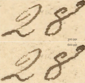 • 300ppi at 1:1 to allow the eye to see the same detail as in the original