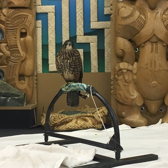 We were very lucky to have a beautiful overnight stay at Wheke Marae, Rāpaki where we were visited by the lovely Kārearea, ‘Hera’, from the Marlborough Falcon Trust and her handler Vicky Smith.  We were given a presentation about conservation of the New Zealand Falcon as living taonga, and the challenges of training Kārearea.