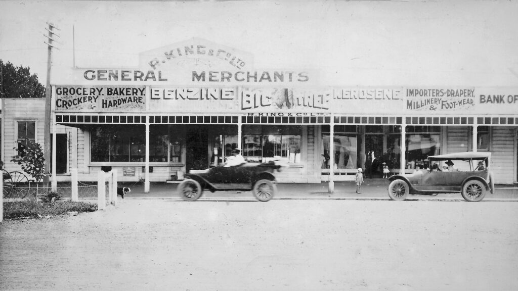 Katikati’s iconic theatre had its origins on Mueller Street in Waihi, where it was known as “Everybody’s Theatre”. The theatre, constructed from kauri wood, was later relocated to Katikati by Bill Henderson. The cinema’s interior was adorned with plush red tip-up seats, stage curtains that gracefully unveiled the screen, and an upstairs gallery. The theatre showcased silent-era films in its early days, and Bill’s wife, Eva (a skilled pianist) provided musical accompaniment, creating an immersive experience that included improvised sound effects. She even went as far as mimicking hoofbeats by tapping her feet on the floor! In 1947, Bill sold the business to the Purcells, and it was subsequently rebranded as the Plaza Picture Theatre. Today, the retail complex Cherry Court occupies the former site of the Katikati Picture Theatre.